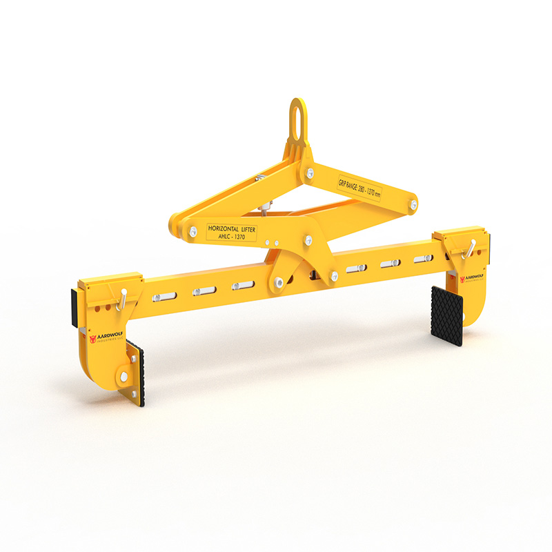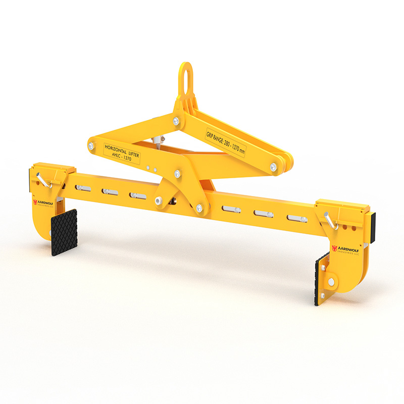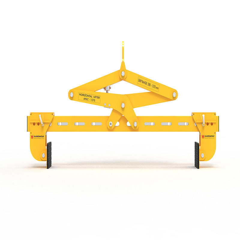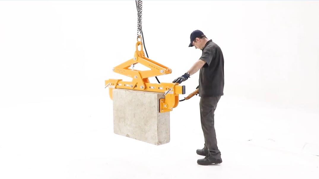 For lifting and moving of concrete blocks and natural stone. Suitable for use on cranes or forklift booms. Clamp jaws are gravity controlled.