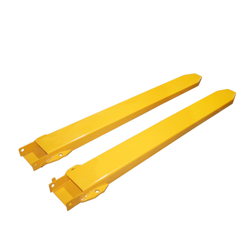The fork extensions slide over fork blades. A fast and efficient way of handling lightweight loads of bulk.